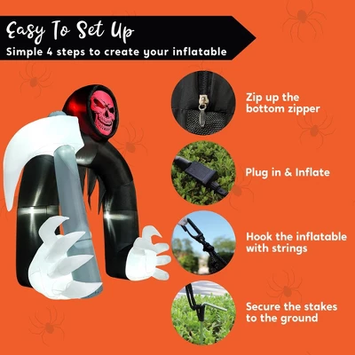 - 💀10-foot towering Grim Reaper with blood-red glowing face for maximum terror!