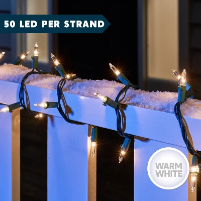 - Pack of 2 LED String Lights. 2×50 Count bright LED bulbs. Brighten up windows, doors, stair railings, or Christmas trees—no outlet needed for endless decorating possibilities.