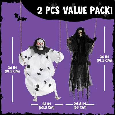 - Flexible Scare Hanging Decoration. Use the ghosts and swings together or separately, each has independent ropes for versatile indoor/outdoor setups on porches, trees, or patios.