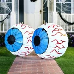 Transform your home into the ultimate Halloween destination with this 2-pack of 3-foot-tall inflatable light-up eyeballs—a spectacle that’s sure to turn heads and drop jaws! Thanks to bright built-in LED lights, these eerie orbs glow menacingly after dark, casting an ominous glare that lures in neighbors, trick-or-treaters, and party guests alike. Whether you’re hosting a haunted house, a costume party, or just want to give your yard or garden a delightfully creepy makeover, these inflatables are the perfect finishing touch. Premium quality ensures they’re tough enough for outdoor weather yet easy and safe for kids to help set up—just plug them in, and they inflate in under a minute!