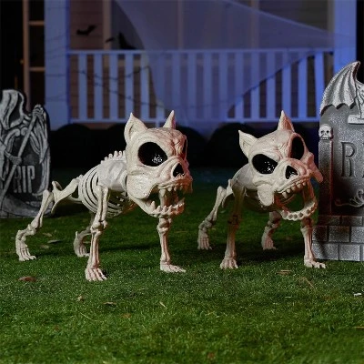 - Crafted from durable materials, these dog skeleton decorations are built to withstand various weather conditions. Whether it’s rain or shine, these skeletons can withstand the elements and remain in great shape throughout the Halloween season.