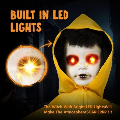 - Motion & sound activated! When triggered within 50cm, it comes alive with Eerie mechanical movements, Haunting light-up effects and sounds.