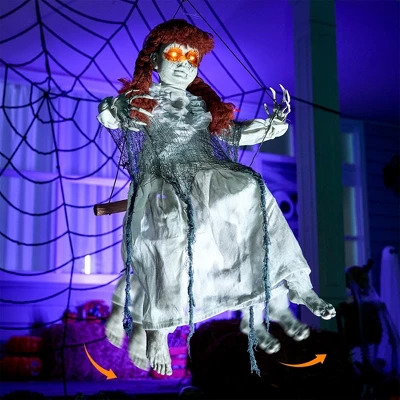 - Ultra-Realistic Animated Display. With lifelike swaying motions and chilling details, this isn’t your average decoration. Its tattered clothing and haunting movements create professional haunted house vibes in your yard or porch.