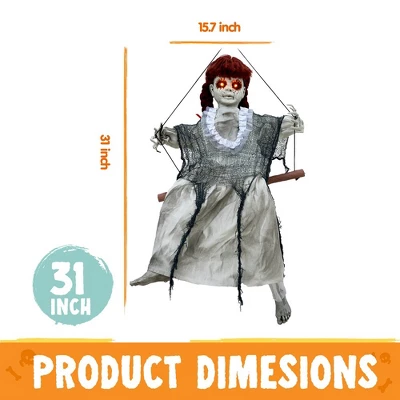 Elevate your Halloween haunt with our terrifying motion-activated hanging doll! This ultra-realistic animatronic decoration delivers next-level scares with its sound-activated movements and eerie haunting sounds – just insert batteries and watch it come alive when guests approach. Crafted from heavy-duty weatherproof materials, this durable prop features lifelike details, tattered clothing, and creepy swaying motions that create professional haunted house effects. Perfect for porches, yards, trees, and haunted houses, its adjustable hanging strap allows for easy installation anywhere.