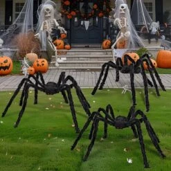 - 3-Pack Giant Spider Set – Includes three massive 63″ (5.2ft) spiders for ultimate Halloween terror.