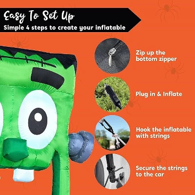 This Halloween Inflatable Green Zombie Trunk or Treat Car Decoration showcases an excellent design that blends creativity with festive charm, making it a must-have for your Halloween celebrations. The vibrant green zombie shape brings a unique twist to traditional Halloween decor, combining spooky elements with a playful, cartoonish appeal that instantly grabs attention. Whether placed in your trunk for a “trunk or treat” event or displayed in your yard, this inflatable zombie adds a fun and original touch to your Halloween setup. Its universal compatibility means it works seamlessly with all car types, allowing you to take the Halloween spirit on the road with ease.