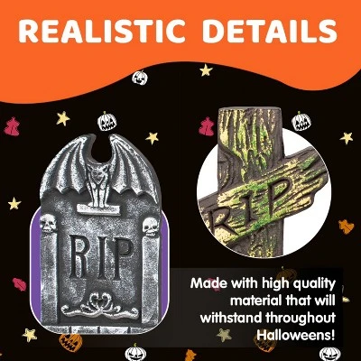 - These realistic-looking tombstones instantly transform any space into a convincing haunted graveyard. Their authentic appearance fools the eye while remaining easy to reposition.