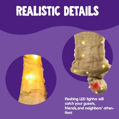- Equipped with a sound sensor, this scary halloween decoration activates a yellow light, trembles, and makes a scary sound, creating a more horrific scene. It’s sure to scare guests and trick-or-treaters. (Requires 3 AA batteries, not included.)