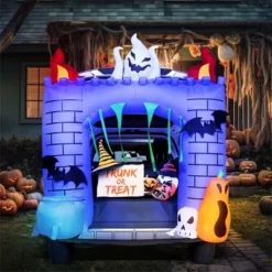 Standing at an impressive 6 feet tall, this Halloween Inflatable Haunted Castle transforms any vehicle trunk into a spooky spectacle with its intricate architecture and eerie details. The castle’s design features with Halloween touches – glowing-eyed ghosts peering from the battlements, grinning jack-o’-lanterns perched on ledges, and bats silhouetted against the moonlit towers. The high-quality printing captures weathered stone textures and shadowy crevices that look remarkably realistic both day and night. Whether emerging from your trunk or standing guard in your yard, this castle makes a dramatic Halloween statement.