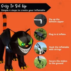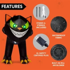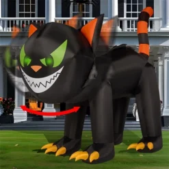 This 7-foot long Halloween inflatable shakeable head green eyes black crawling cat decoration is a standout piece that will make your Halloween display truly unforgettable. Its lifelike crawling motion and head-turning feature add an eerie touch to any scene, making it a perfect centerpiece for your Halloween setup. The cat’s detailed design, with its vibrant green eyes and menacing expression, brings a sense of realism that is sure to captivate your guests. Its eyes are embedded with vibrant green F5 LED lights that cast an eerie glow, enhancing the Halloween ambiance and creating a haunting atmosphere. The combination of the head-moving motion and the glowing green eyes makes this decoration truly captivating, adding an extra layer to your Halloween setup. Whether placed in the yard, garden, or at a Halloween event, this inflatable cat will undoubtedly be the highlight of your decorations.
