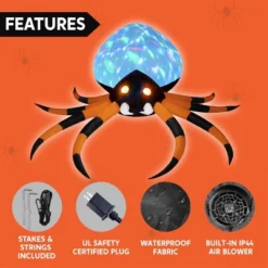 Experience the ultimate Halloween thrill with our giant inflatable spider, featuring a mesmerizing display of rotating colorful lights and hauntingly glowing eyes that bring this creature to life in the most eerie way imaginable. Watch in awe as the spider’s menacing eyes emit an unsettling glow while its massive body illuminates with vibrant, multicolored LED lights that rotate through a spine-chilling spectrum of colors, creating a captivating and terrifying spectacle that will leave your guests and trick-or-treaters utterly amazed. Whether you’re setting up a professional haunted house attraction, hosting a spooky Halloween party, or simply sprucing up your yard for trick-or-treater arrivals, this inflatable spider stands as the perfect choice that brings professional-quality scares to any Halloween celebration.