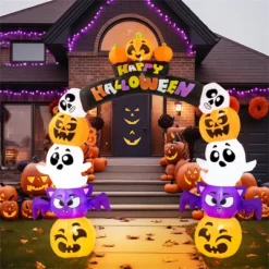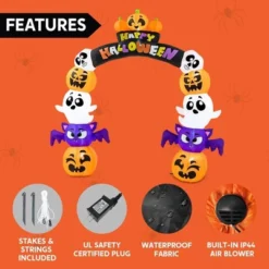 Standing at an impressive 8 feet tall, this stack character pumpkin archway inflatable is a magnificent addition to your Halloween decorations. The archway features bright built-in LED lights that illuminate the structure in the evening. These lights create a stunning visual effect, making the archway the best attraction to neighbors and guests. The vibrant glow of the LED lights adds a magical touch to your Halloween display, enhancing the festive atmosphere. It is ideal for Halloween outdoor yard garden decorations, trick or treat event decoration, Halloween night events, Halloween costume parties, haunted house decorations, and more. Its versatility makes it a must-have for anyone looking to create a memorable Halloween experience.