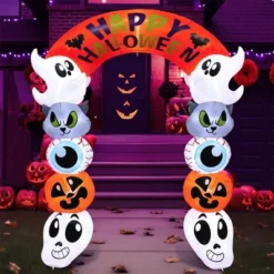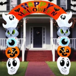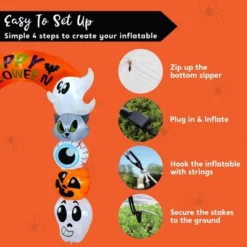 This Halloween inflatable cute stacking characters decoration is a delightful addition to your Halloween party, guaranteed to capture the attention of all your guests. Its stunning visual effects make it an unmissable centerpiece, with adorable characters stacked together in a whimsical and charming arrangement. Measuring 6.5 x 2 x 8 feet, this decoration is the perfect size to make a statement without overwhelming your space. Built-in LEDs lights highlight the playful scene, casting a warm and enchanting glow that adds a charming and magical element to your Halloween display. Whether placed in the yard, garden, or at a Halloween event, the glowing archway will create a captivating and immersive experience for all who see it.