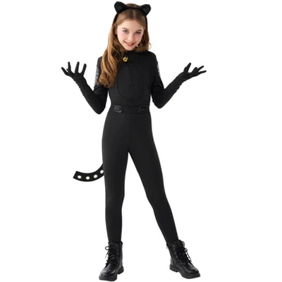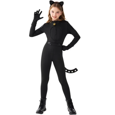 - Our black cat costume includes a bodysuit, belt, headband, and gloves, providing everything needed to create a complete and charming cat look. Each piece is designed to work together seamlessly, ensuring your little one embodies the mysterious allure of a feline.