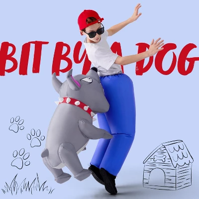 - Complete Set: Embrace a whimsical and eye-catching look with our inflatable costumes designed for kids.Our premium inflatable set includes a Biting By a Dog Inflatable suit, an inflatable tool, an instructions sheet and portable power box (requires 4 AA batteries, batteries not included in the set)
