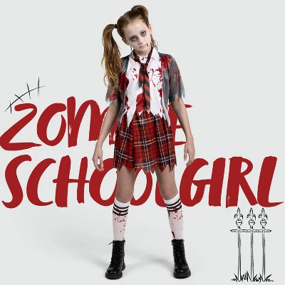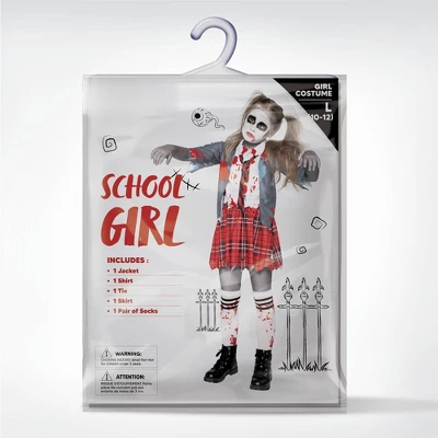 Get ready to scare and impress this Halloween with our Super Value Pack Zombie Schoolgirl Costume. This complete set includes a shirt, tie, jacket, skirt, and socks, all splattered for a terrifyingly accurate look. Made from premium materials, this costume is not only comfortable but also durable, ensuring a great experience throughout the night. Get this scary and cute costume today and make your girl the talk of the town this Halloween!