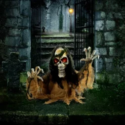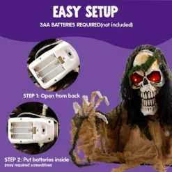 - Sound & Motion-Activated Terror – Steps or screams trigger bone-chilling sounds and flashing eyes, delivering heart-pounding scares on demand. (Runs on 3 AA batteries—not included)