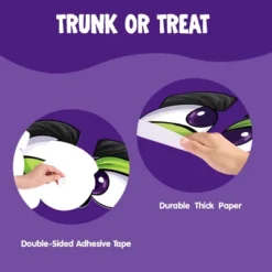 Do a Frankenstein trunk or treat event and adults can decorate the back of their cars for Halloween, load up on candy, and come sit in a parking lot for kids to “trick or treat” from car to car. In full Halloween costumes, and holding out bags or plastic pumpkins for treats, hundreds of children will occasionally arrive. While taking in all the adorable costumes, the grownups get to interact and express their creativity. This Frankenstein trunk or treat is a design with a really huge size. The forehead measures 35 inches for the largest. Eyes measure 15 inches for the largest. Safe for children, non-toxic, non-BPA. Meet US toy standards. Safety test approved. Great Halloween decor choice for your home and vehicles. These Halloween trunk or treat car decorations kit will decor your front yard and make for fun party games as trick-or-treaters come to visit. Each pack includes 1 huge forehead design, 2 huge eyes, 2 ears, 2 hands, 2 bolt nostrils, fangs, and 60 dot glues. We designed this to be used as a trunk or treat decoration but it can also be used as a Halloween front door or room decor.