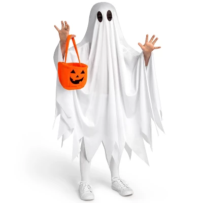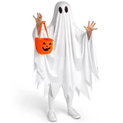 - 👻Comprehensive Costume Set: Includes a white ghost sheet and a pumpkin-shaped bag for a complete ghost transformation.