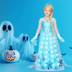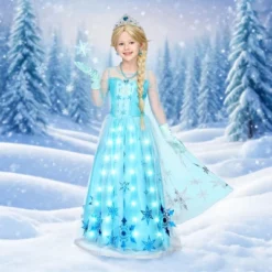 - 👗✨This ice princess ensemble is designed to make every moment magical. Whether you’re attending a Halloween party, a themed event, or a birthday celebration, this costume will ensure you stand out with its enchanting design and light-up feature.