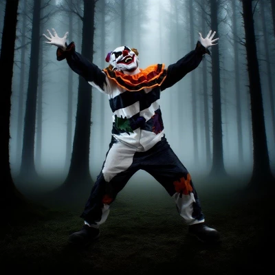 Embrace your inner darkness with our spellbinding kids clown costume set, featuring a a jumpsuit and a full-head mask with a little hat. Each element is meticulously crafted to evoke an aura of mystery and intrigue, ensuring you embody the essence of the night.