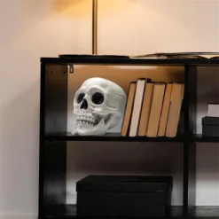 - This durable skull model measures 6″ x 5.5″ x 7.5″, making it compact and easy to display both indoors and outdoors. Its size is perfect for seasonal decorating and convenient storage for future Halloween celebrations.