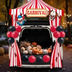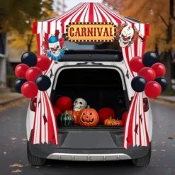 Transform your car into a spectacular Halloween carnival with our Complete Trunk-or-Treat Decorating Kit! This all-in-one set includes everything you need to create a showstopping display. The glowing carnival sign becomes the centerpiece of your display, making your car visible and vibrant even at night. Everything you need to create a professional-looking Halloween carnival display – no extra purchases required! Make this your most memorable Halloween yet with our complete decorating kit!