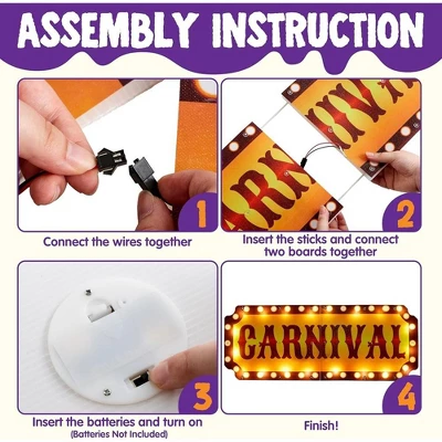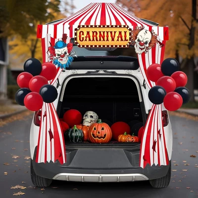 - Complete Carnival-Themed Kit. Get everything you need in one box – 8 decorative boards, carnival tent with curtains, light-up sign, fiber rods, 12 balloons, and 48 damage-free adhesive stickers for a complete Halloween carnival transformation.