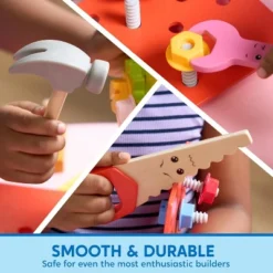 - Trusted Quality and Durability: Crafted from durable wood with a non-toxic coating, this tool set boasts a smooth, polished finish and rounded edges, ensuring safety and ease of use for little hands. Its sturdy construction guarantees long-lasting play, making it a reliable addition to any playroom. Perfect for those seeking wooden toys or Montessori toys for 3-year-olds, it stands out as a top choice among educational toys and gifts.