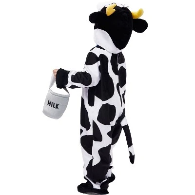 🥛 The Cutest Little Calf in Town!Dress your tiny tot in this ultra-soft cow costume, complete with a hood, booties, tail, and plush milking bucket—perfect for Halloween, farm-themed parties, or cozy everyday wear!🎁 What’s Included?✔ Cow Romper – Black & white fleece with attached tail✔ Hood with Ears – Extra cuddly with stitched horns✔ Matching Booties – Tiny hoof prints for added charm✔ Plush Milking Bucket – For pretend farm play